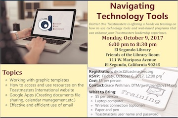 Living up to the Toastmaster International goal of creating effective leaders and communicators, District ONE Toastmasters is striving to create[…]
